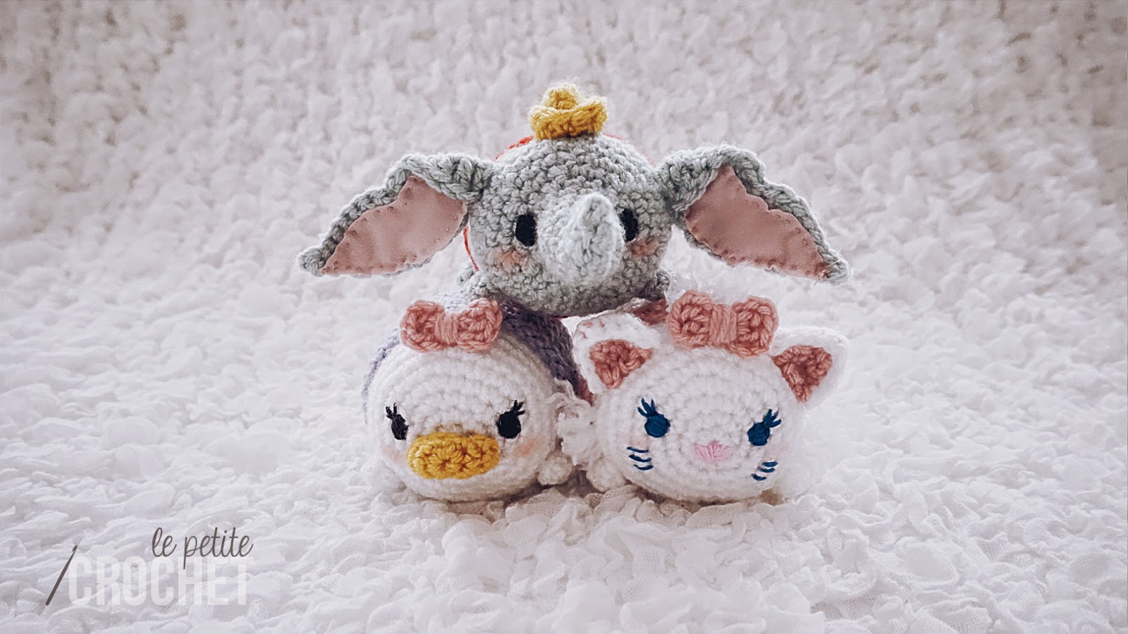 Anyone else remember bawling their eyes out when they watched Dumbo? `Cause I know I did! That movie was just a train ride of feels. Out of all the tsum tsums I've crocheted so far, Dumbo has a real soft spot in my heart. I also love elephants, and am so pleased with how the ears turned out!